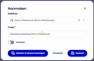 Een Inslagmethode is altijd gekoppeld aan een Debiteur. - Selecteer de Debiteur waarop de Inslagmethode van toepassing is.