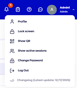Rechts in de header wordt het gebruikersprofiel weergegeven van de persoon die is ingelogd in Babeldat. Wanneer op het gebruikersaccount wordt geklikt, verschijnen de volgende opties: